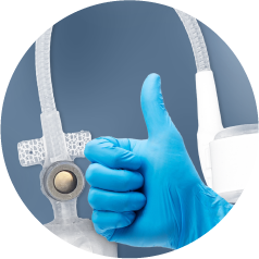 O dispositivo é fornecido com um manguito insuflável e ajustável único que se adapta a diferentes tamanhos de uretra.